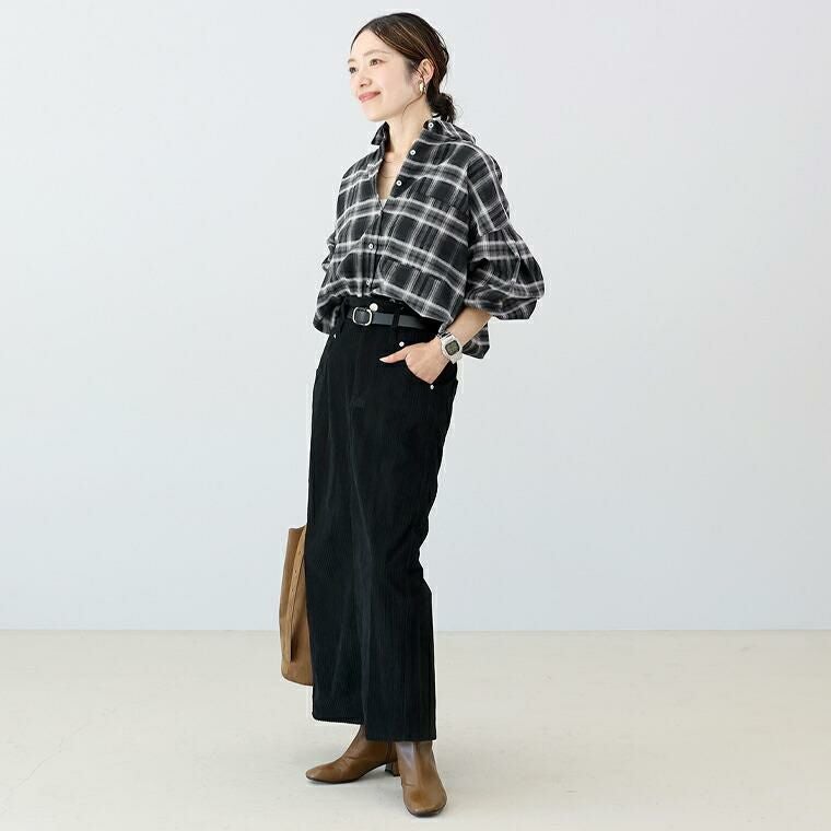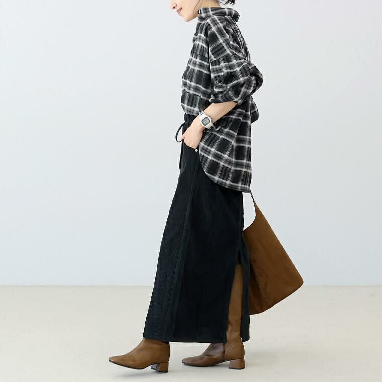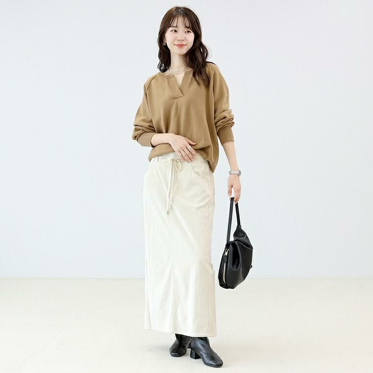 休日にさらりと映える、Iラインのロングコーデュロイスカート