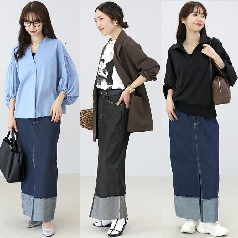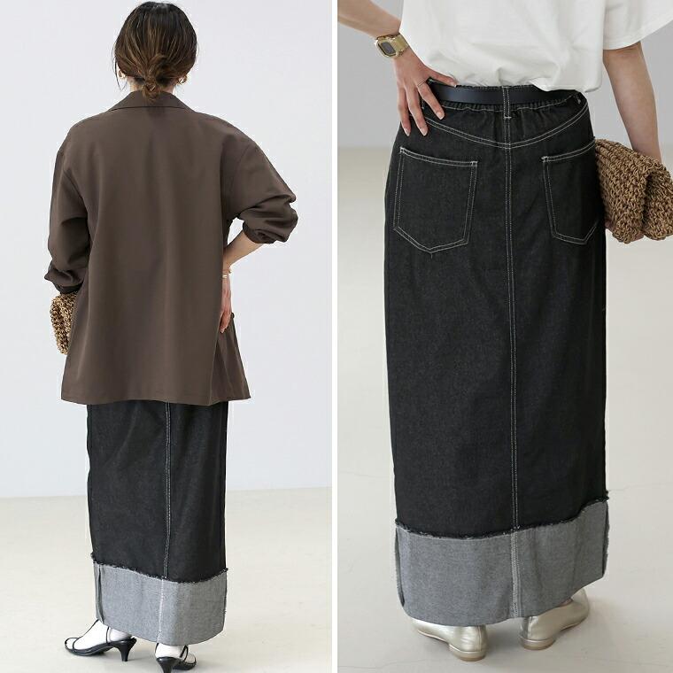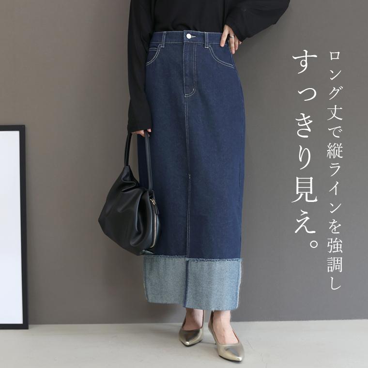 【未発売新作】新作72H限定クーポン利用で10%OFF★3月4日10時発売開始★12.5oz裾切替デニムロングスカート 【メール便不可】