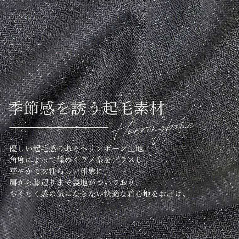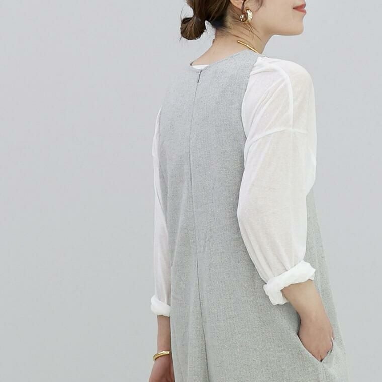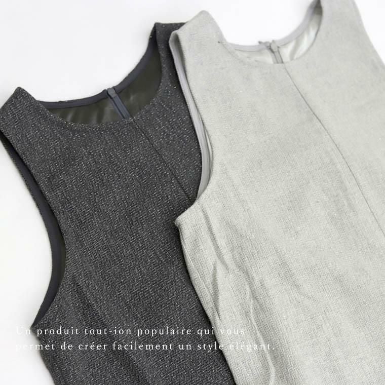 シンプルなインナーに合わせるだけでコーデが完成する便利なサロペットの登場です。起毛感のあるヘリンボーン生地にラメ糸をプラスし、上品ながらほどよい華やかさを。表情豊かなヘリンボーン柄が凛とした印象で、季節も先取り。ウォーム感あるコーデに仕上がります。胸元まで高く覆うシルエットは縦のラインを強調してくれる効果も。すらりとした見た目で、脚のラインを拾いにくいほどよいワイド感も嬉しい。秋冬のお洒落をグンと引き上げてくれるパンツスタイルのサロペットです。