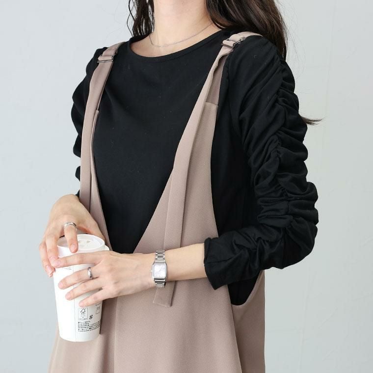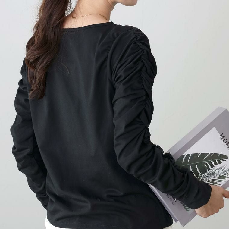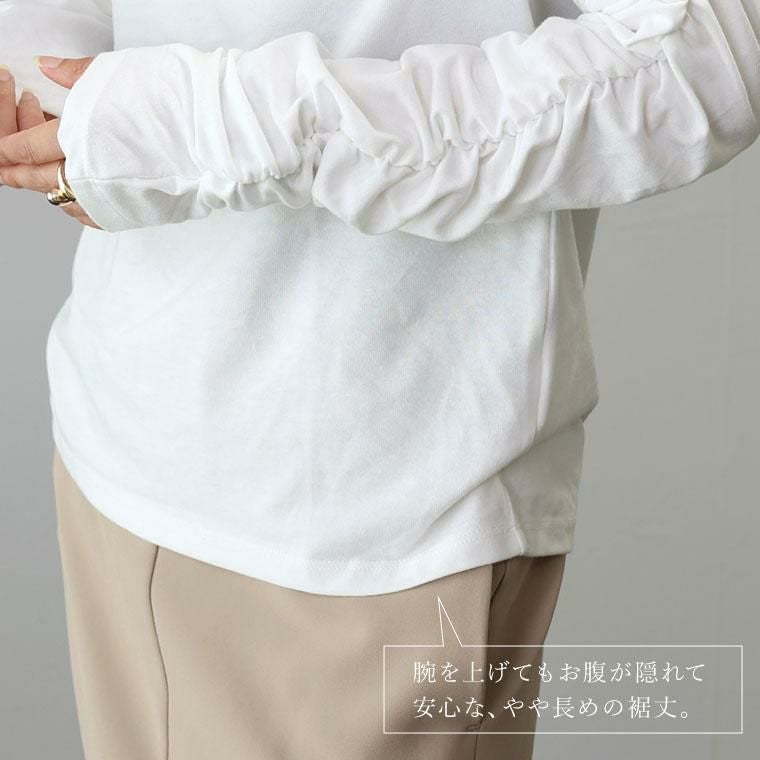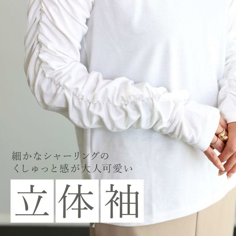 【重ね着が華やぐ袖シャーリングカットソー】