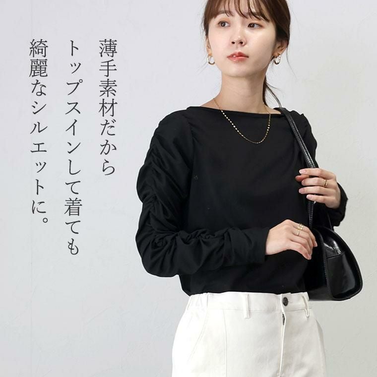 ボートネック袖シャーリングカットソー