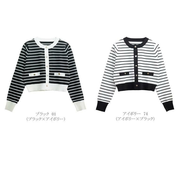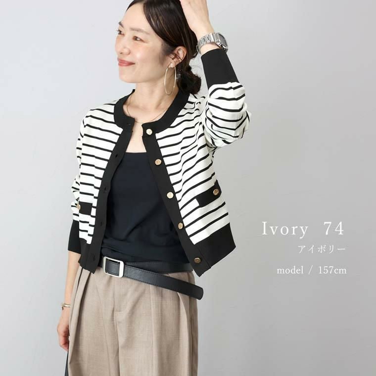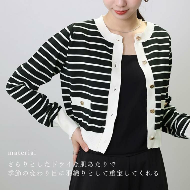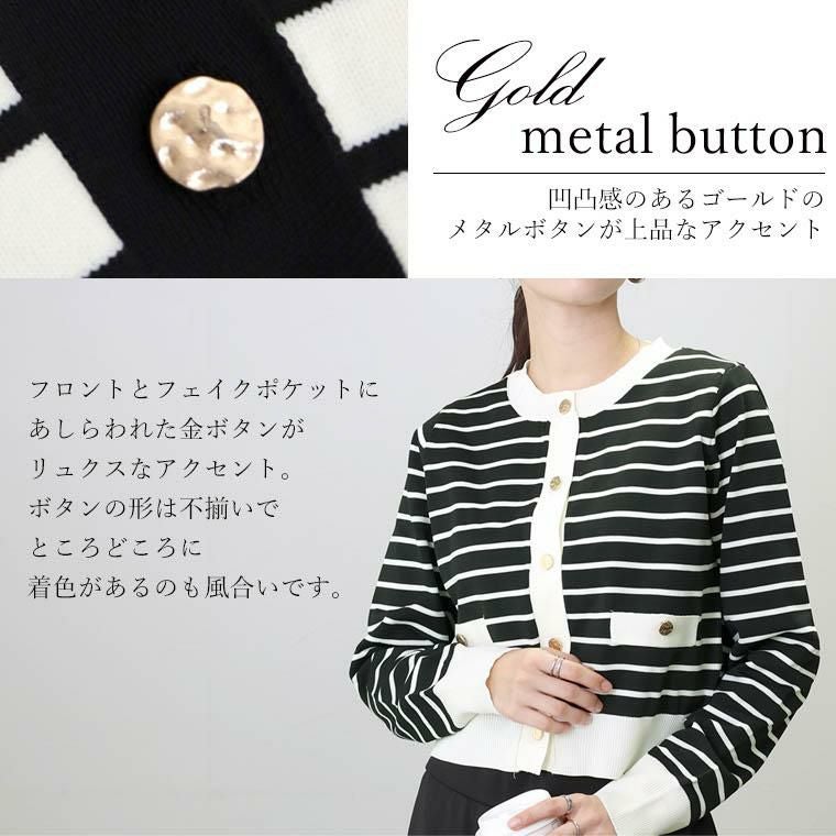 ゴールドボタンライトニットボーダーカーディガン