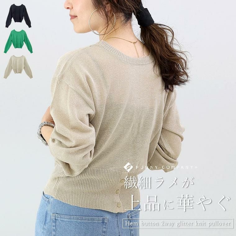 トップス プルオーバー 裾ボタン ボタン 2WAY ラメ ニット きれいめ キレイめ 綺麗め 上品 おしゃれ お洒落 大人め ネイビー 紺 グリーン 緑 ベージュ カラバリ豊富 大きめ 大きい ワンマイルウエア ワンマイルウェア レディースファッション 無地 ラクチン らくちん 楽ちん 動きやすい プラスサイズ 着痩せ 華奢見え 脚長 脚長効果 ゆったりサイズ ゆる すっきり カバー 体型カバー きちんと シンプル カジュアル ナチュラル ベーシック オフィス オフィスカジュアル テレワーク リモートワーク リモート 会議 食事会 ランチ 女友達 参観日 二次会 飲み会 上品 知的 女性らしい 女らしい 着映え オンライン飲み会 着回し 大人 大人カジュアル オトナ 女性 綺麗 きれい キレイ キレイめ 高見え 上質 上品 大きめ 大きい 大きいサイズ 体型カバー 華奢見え 着痩せ 細見え 着回し 大人 大人カジュアル オトナ 女性 綺麗 女性 女性服 アースカラー フリーサイズ レディースファッション ラクチン 楽 らくちん 楽ちん ノンストレス 動きやすい プラスサイズ 着回し プラスサイズ ゆったり ゆったりサイズ ゆる すっきり シンプル 無地 きれい キレイ きれいめ キレイめ 高見え 上質 高級感 母の日 プレゼント ギフト 贈り物 S M L LL 2L XL 20代 30代 40代 50代 おしゃれ パ―ト バイト 仕事 仕事用 ユニフォーム 春夏 春 夏 秋冬 秋 冬 お洒落 オシャレ かわいい 可愛い カワイイ かっこいい カッコいい FUNNY COMPANY ファニーカンパニー ふぁにーかんぱにー ファニカン