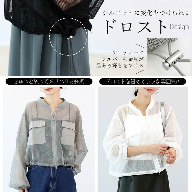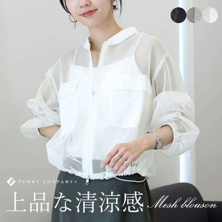 ブルゾン アウター 羽織り メッシュ シアー 透け 長袖 ワイド 両ポケ ダブルポケット ダブルジップ ファスナー ヘルシー 華奢 着痩せ 着やすい シンプル キレイ見え きれいめ キレイめ 綺麗め 上品 楽ちん イージー イージー素材 ルーズ ゆるめ ゆったり リラックス おしゃれ お洒落 体型カモフラージュ 大人め ブラック クロ 黒 黒色 白 オフホワイト ホワイト グレー 灰 カラバリ豊富 大きめ 大きい ワンマイルウエア ワンマイルウェア レディースファッション 無地 ラクチン らくちん 楽ちん 動きやすい プラスサイズ 着痩せ 華奢見え 脚長 脚長効果 ゆったりサイズ ゆる すっきり カバー 体型カバー きちんと シンプル カジュアル ナチュラル ベーシック オフィス オフィスカジュアル テレワーク 会議 食事会 ランチ 女友達 参観日 二次会 飲み会 上品 知的 女性らしい 女らしい 着映え オンライン飲み会 着回し 大人 大人カジュアル オトナ 女性 綺麗 きれい キレイ キレイめ 高見え 上質 大きいサイズ 細見え 女性服 アースカラー フリーサイズ 楽 ノンストレス 動きやすい ゆったり 高級感 母の日 プレゼント ギフト 贈り物 S M L LL 2L XL 20代 30代 40代 50代 おしゃれ パ―ト バイト 仕事 仕事用 ユニフォーム 春夏 春 夏 秋冬 秋 冬 お洒落 オシャレ かわいい 可愛い カワイイ かっこいい カッコいい FUNNY COMPANY ファニーカンパニー ふぁにーかんぱにー ファニカン
