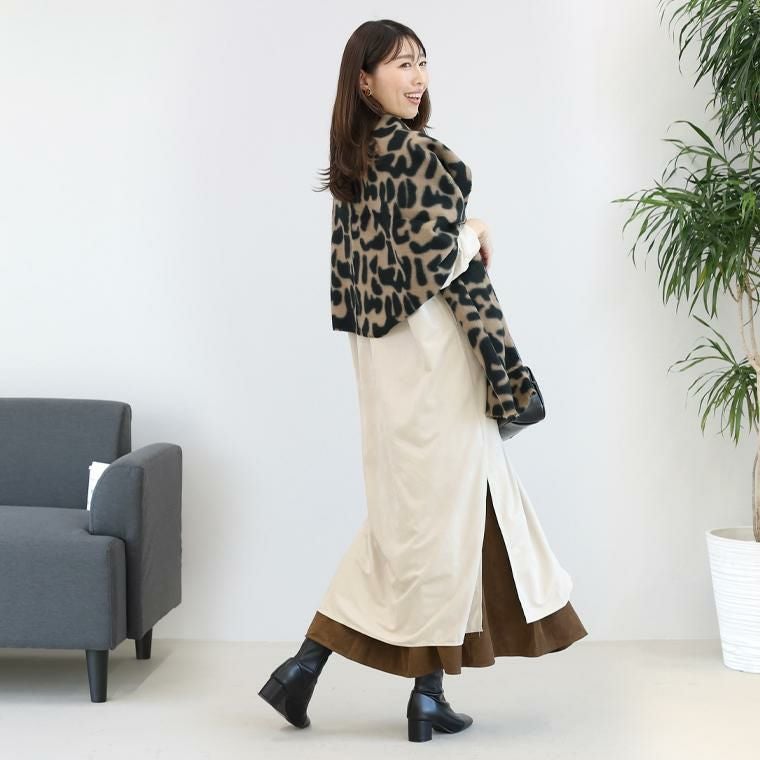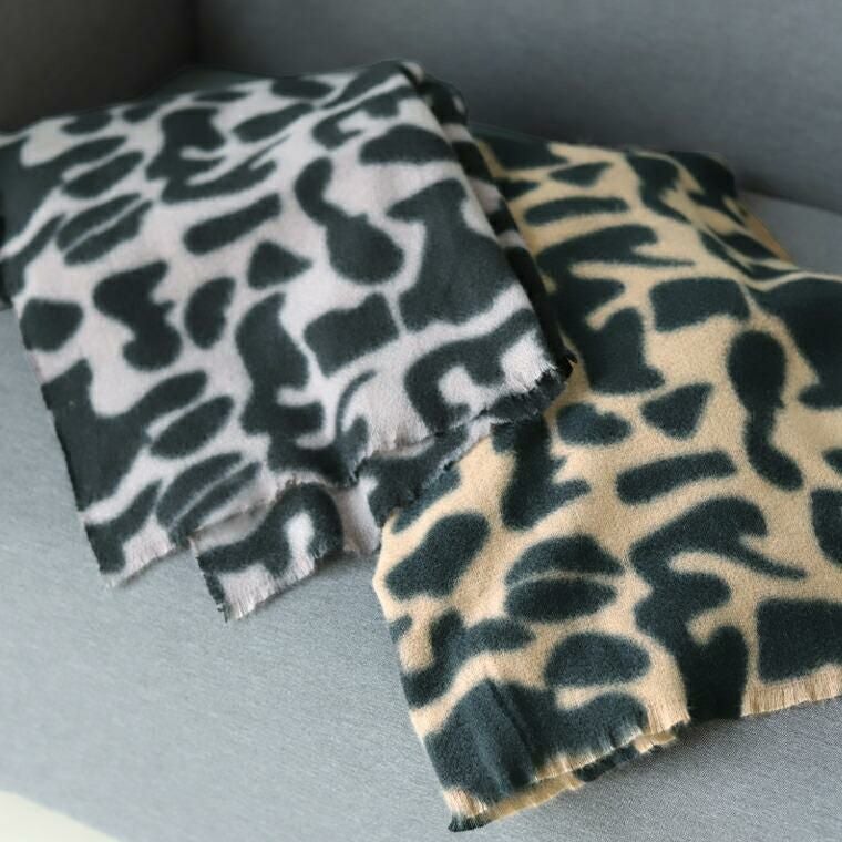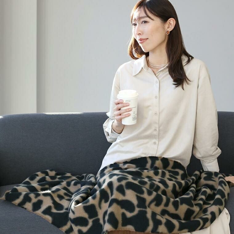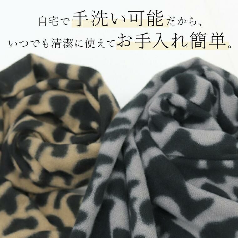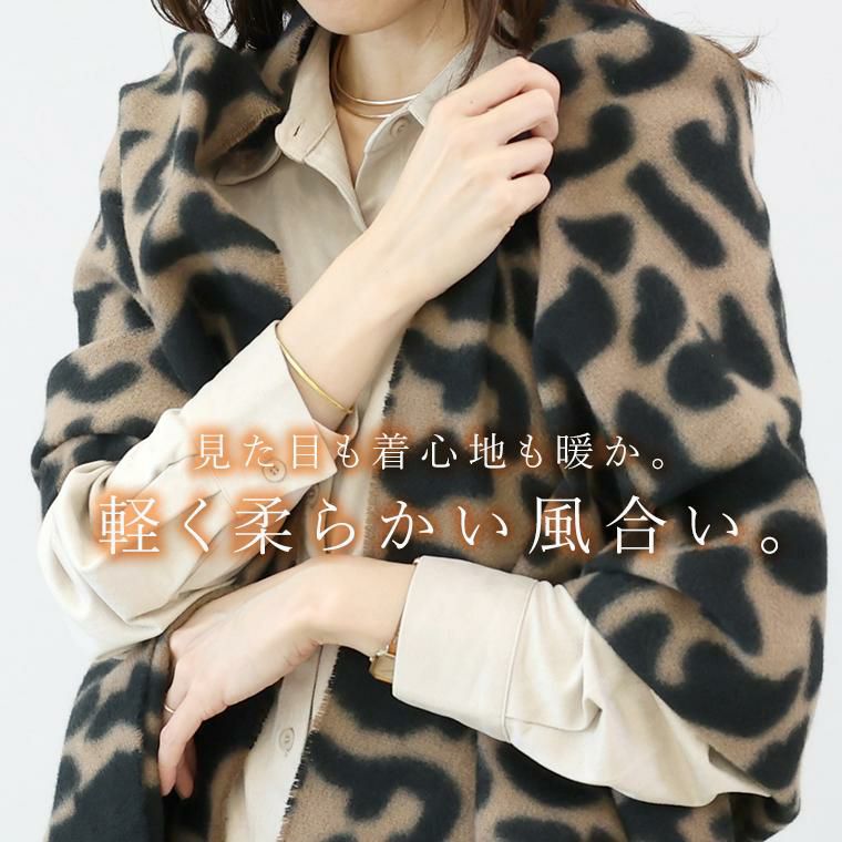 軽くてやわらかな肌触りで、首元をやさしく包み込む柄ストール。見た目も着心地も暖かな起毛仕立て。落ち着いたトーンのレオパード柄だから、派手にならず大人の装いに自然に馴染みます。ミドルサイズで巻き方のアレンジも簡単。肩掛け・ひと巻き・膝掛けに。自宅で手洗い可能だから、いつでも清潔に使えてお手入れも簡単です。シンプル服の仕上げにぴったりなコーディネートのアクセントになる主役アイテムです。