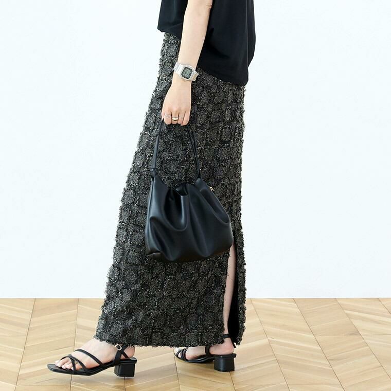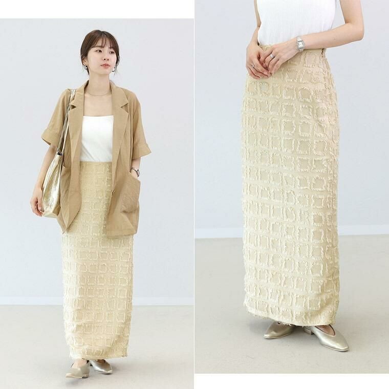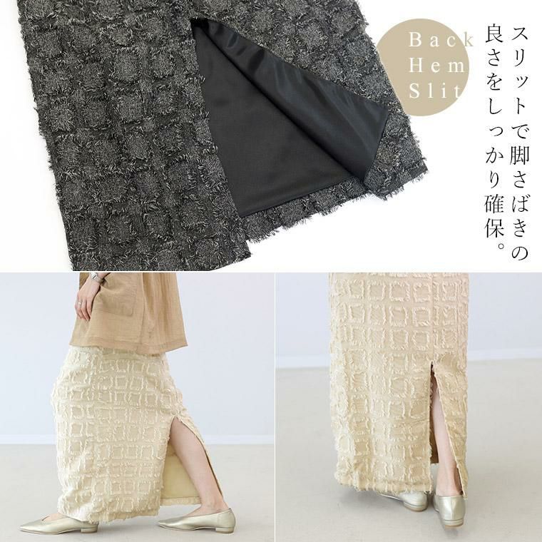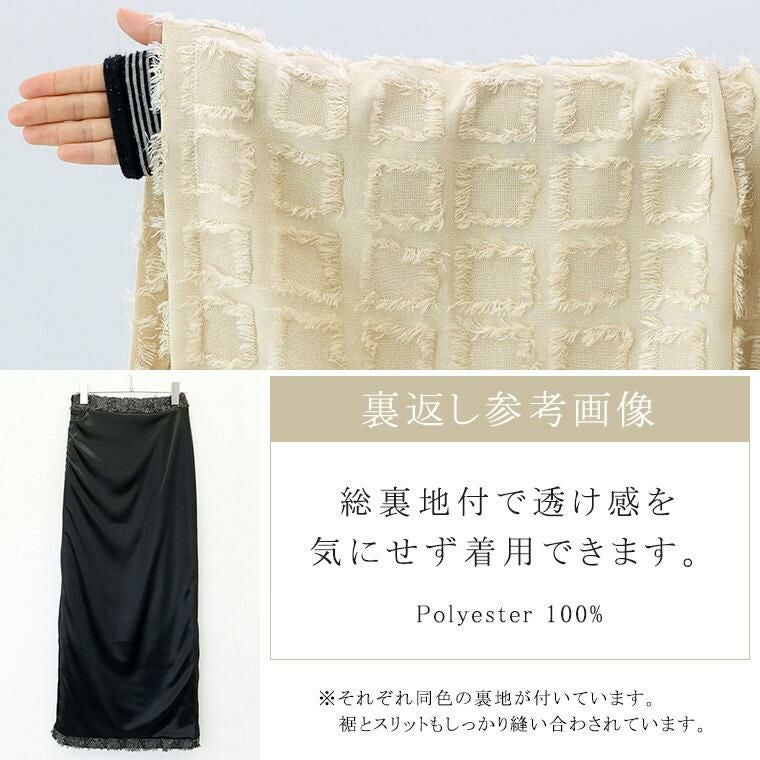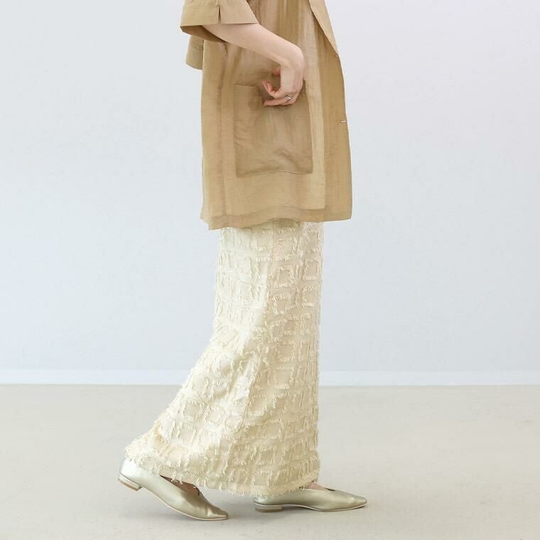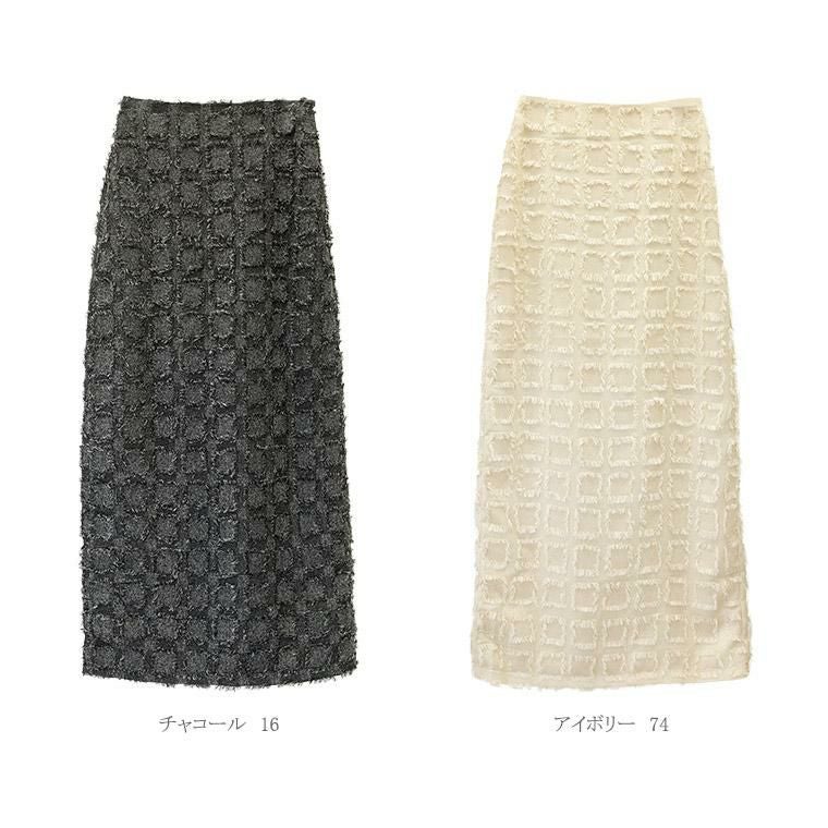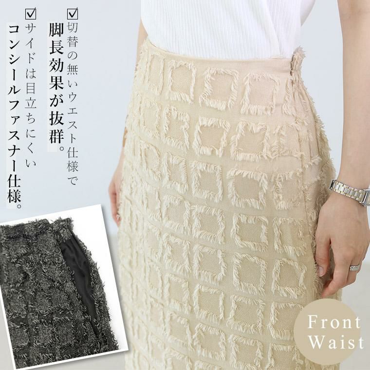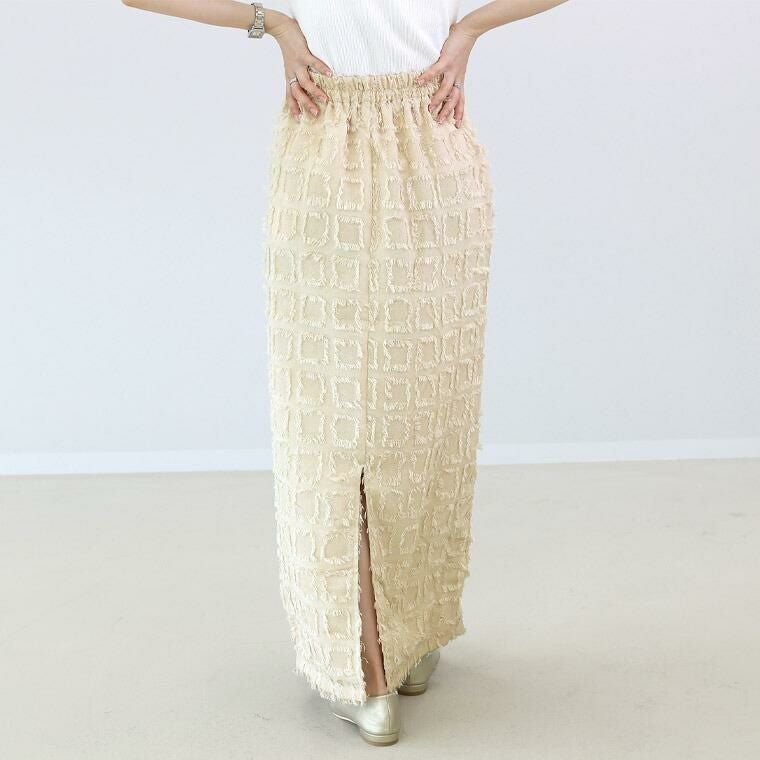 表面変化のあるフリンジチェックロングスカート