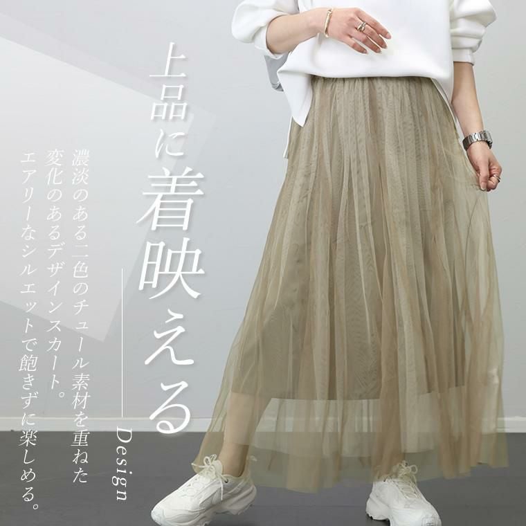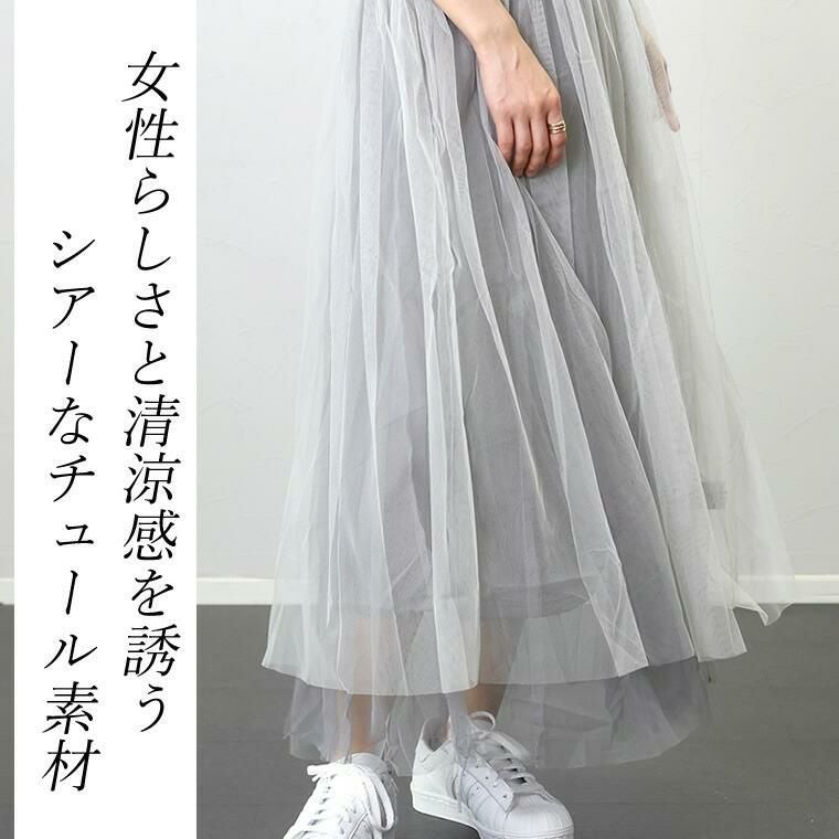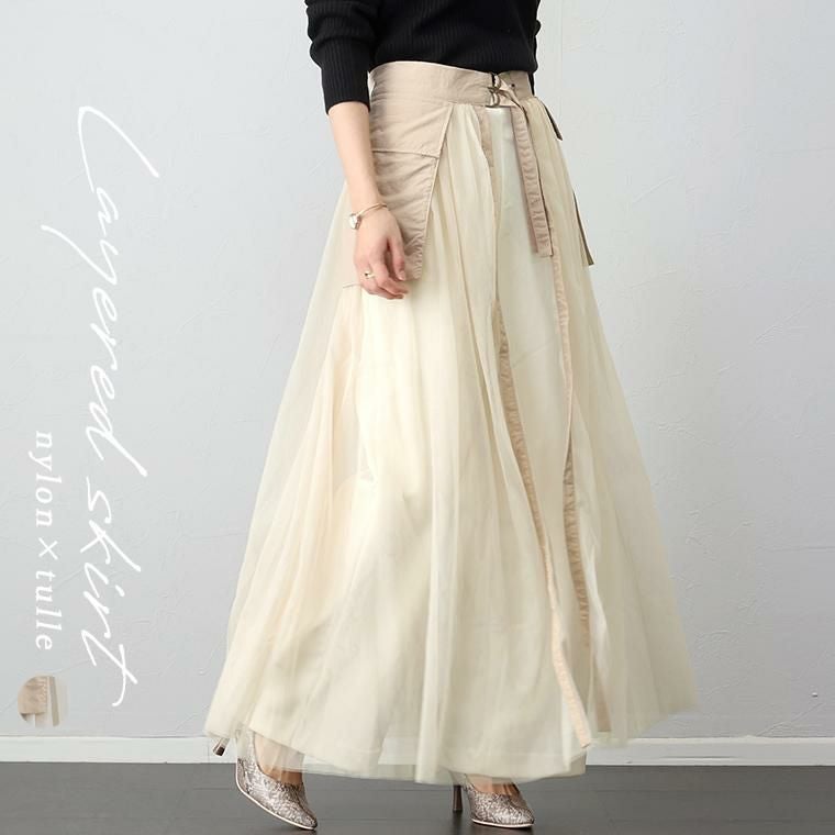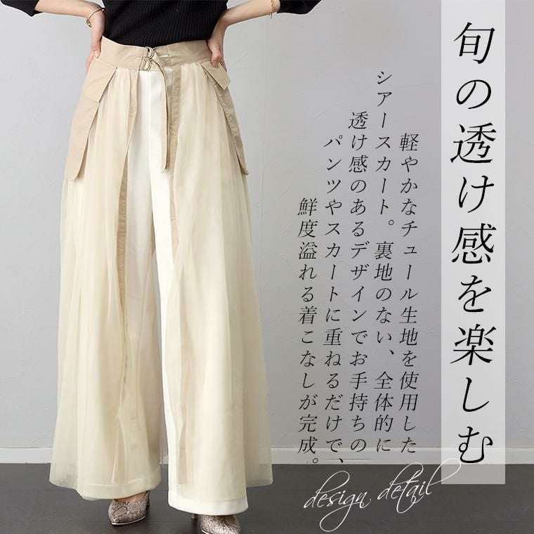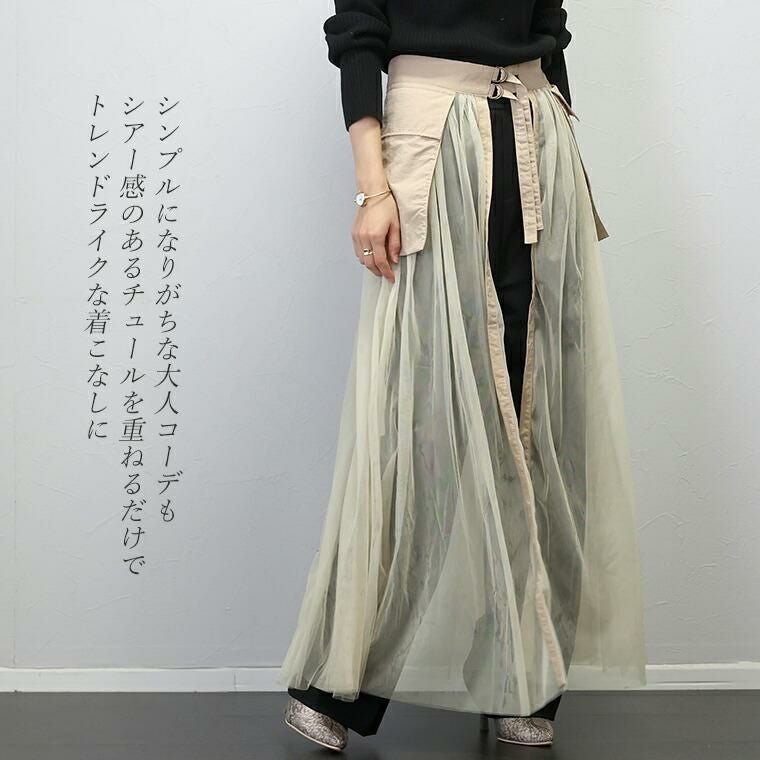 他の画像を見る お手持ちボトムに重ねるだけで一気に華やぐ 軽やかチュールのシアースカート 期間限定セール★ナイロンxチュールレイヤードスカート 【メール便不可】 【返品交換不可】 定価 ¥ 5,170 のところ ¥ 2,970 税込 販売開始前です。 販売期間 2026/03/03 20:00 〜 2026/03/11 1:59 カートに入れる お気に入りに登録する