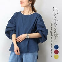 キャンブリックコットン袖ギャザードルマンブラウス 【メール便可/ma1.5】