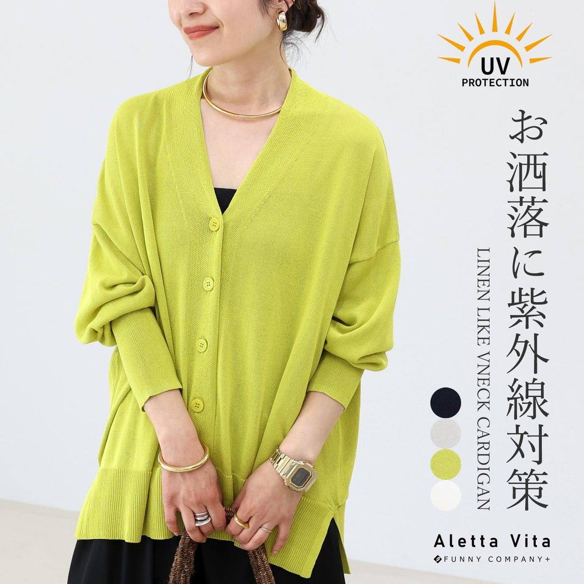 他の画像を見る 絶妙なシルエットでデイリーに役立つ大人のUVカーディガン UV加工リネンライクVネックカーディガン 【メール便可/ma3】 通常販売価格 ¥ 3,960 税込 カートに入れる お気に入りに登録する