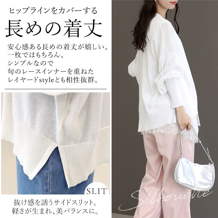 他の画像を見る 羽織るUV対策 長袖ver. UV加工ガーター編みVネック長袖カーディガン 【メール便可/ma3】 カーディガン プルオーバー 30代 40代 体型カバー 紫外線対策 冷房対策 機能性 サマーニット ワイド ゆったり レディース 通常販売価格 ¥ 4,620 税込 カートに入れる お気に入りに登録する