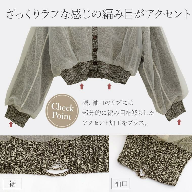 他の画像を見る メランジニットとチュールの掛け合わせが今年らしいカーディガン チュール重ねVネックカーディガン 【メール便不可】 通常販売価格 ¥ 5,610 税込 カートに入れる お気に入りに登録する